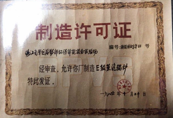 1986年获得首张锅炉制造E级许可证;